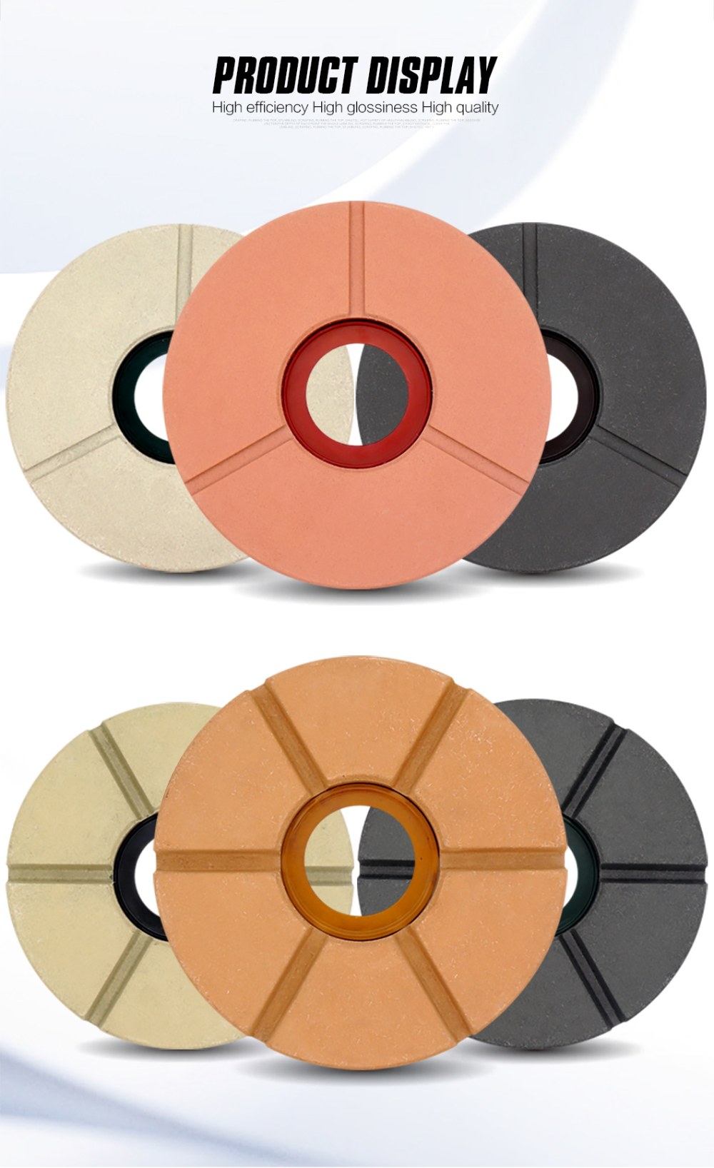 Buff Polishing Disc is pressed buff abrasives with exclusive bond for soft to hard granite polishing on automatic polishing lines and manual polishing machines.
