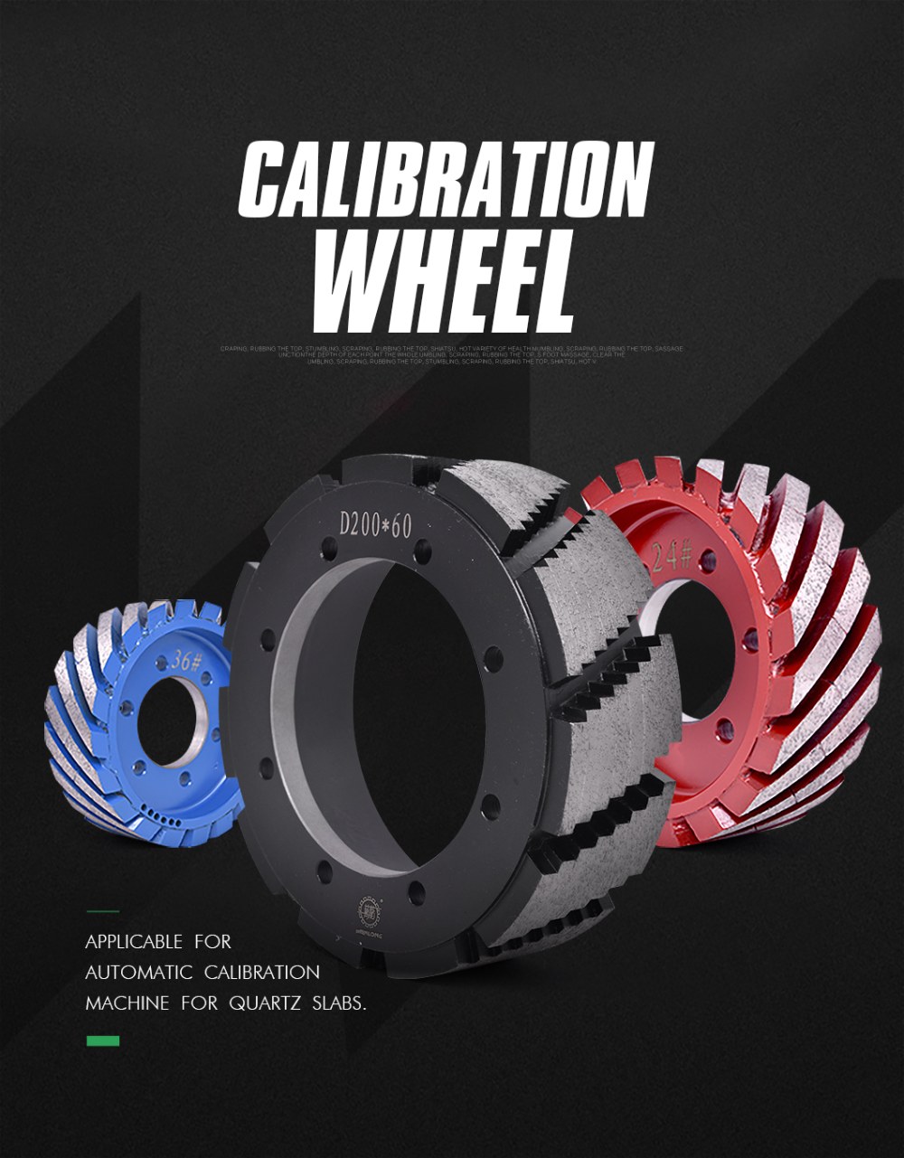 Calibration Wheel is designed to calibrate or remove stock on quartz stone surface to get fixed thickness and prepare for next grinding and polishing steps. Surface calibration is the first step in quartz stone polishing and it is fundamental important in the quartz stone processing and usually the calibration are done on both the top and bottom of the slab. It helps eliminate defects formed during moulding.