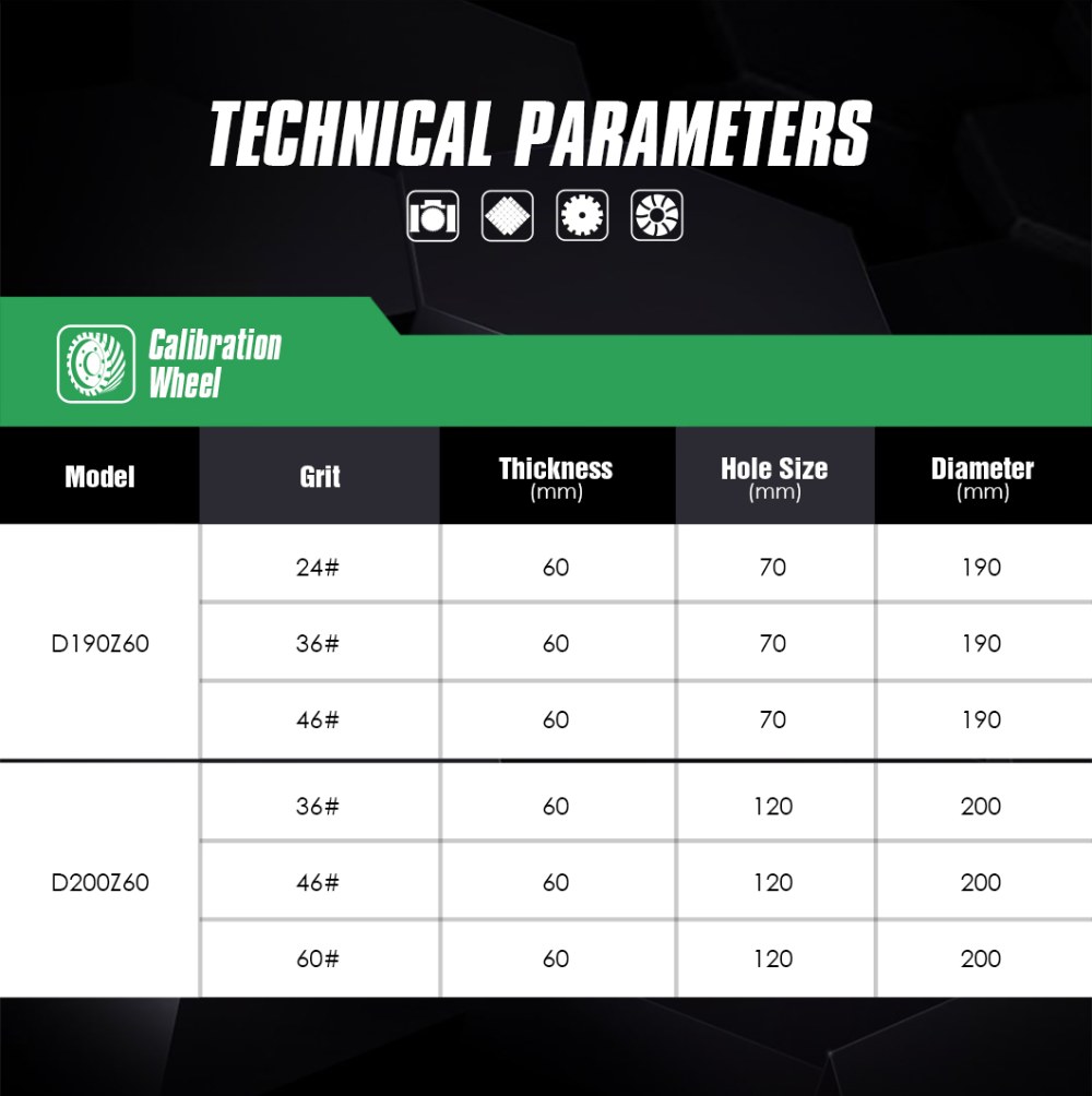 calibration roller heads: entering calibration, high removal calibration , calibration , pre-finishing, finishing etc wheel as well as the diamond fickert .
